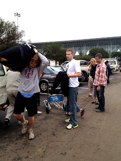 Christian and Bink were helping the team get their stuff loaded in the vans when they arrived.